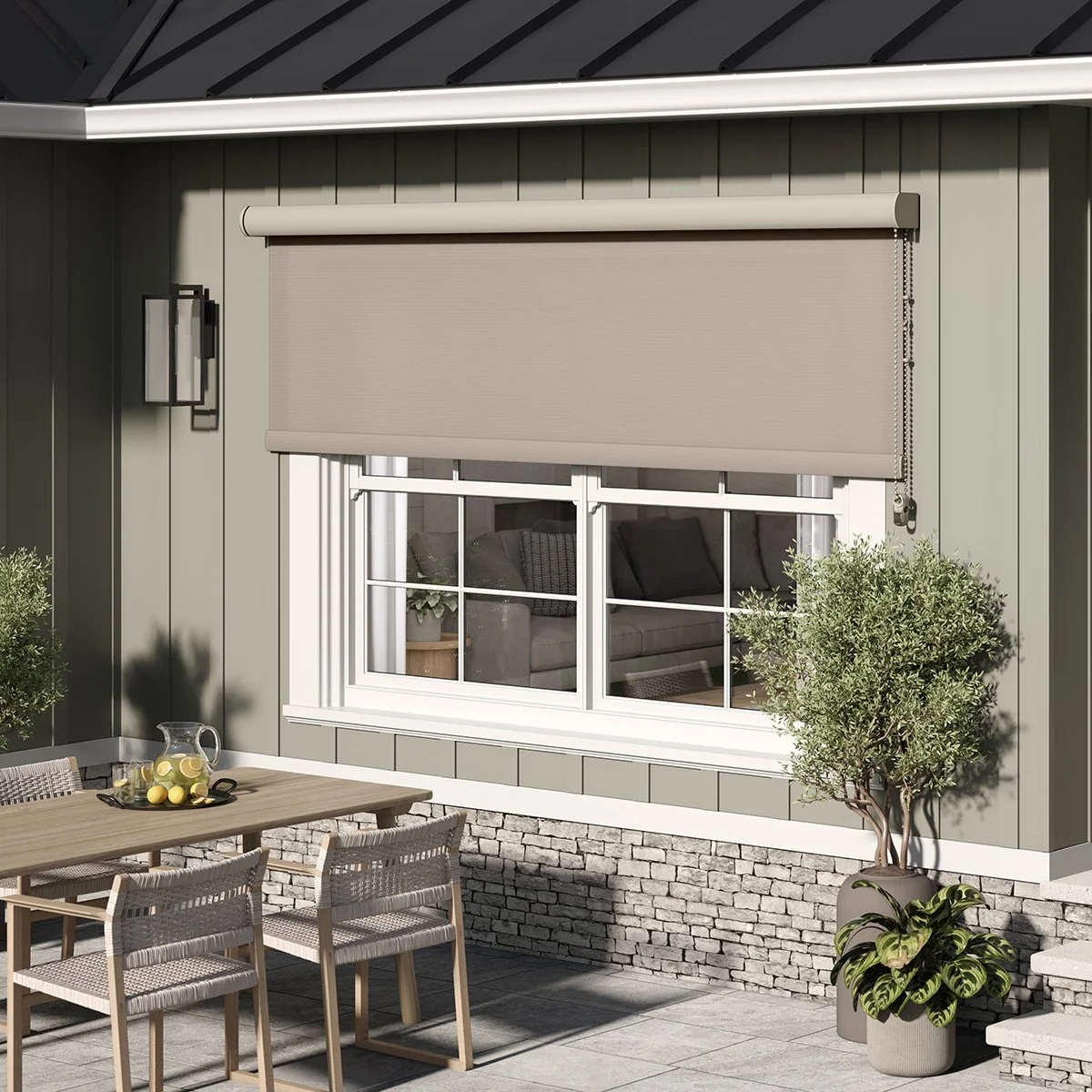 Our Manual EasyShade offers all the same sun-blocking and energy-saving benefits as the motorized model—just without the motor. It’s easy to use with a hand crank and requires no electricity. A smart, budget-friendly way to stay cool!